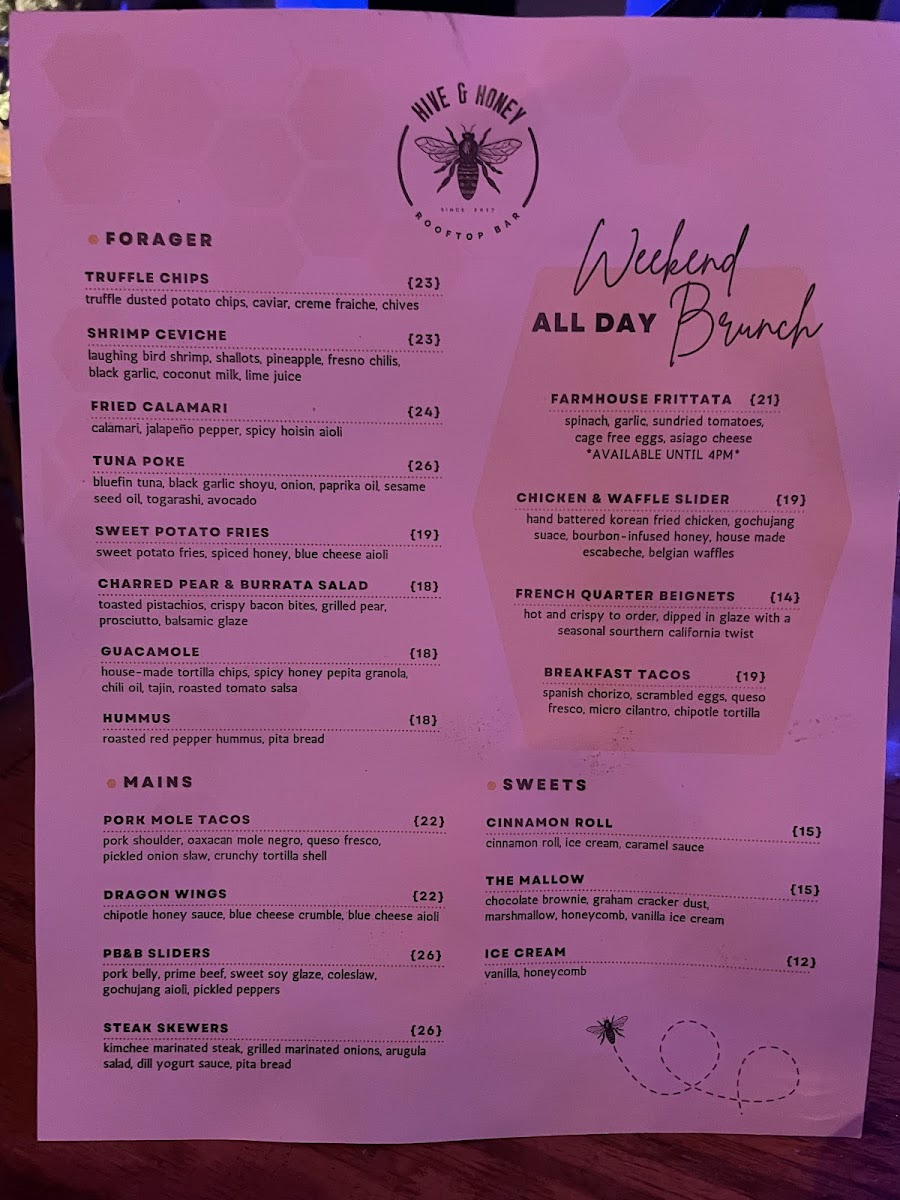 Experience the vibrant ambiance and delightful culinary offerings at Hive and Honey Rooftop Bar, nestled atop the Marriott in the heart of Irvine, CA. This rooftop gem is not just a bar; it’s an unforgettable dining destination that combines a unique cocktail menu with a breathtaking view of the surrounding landscape.