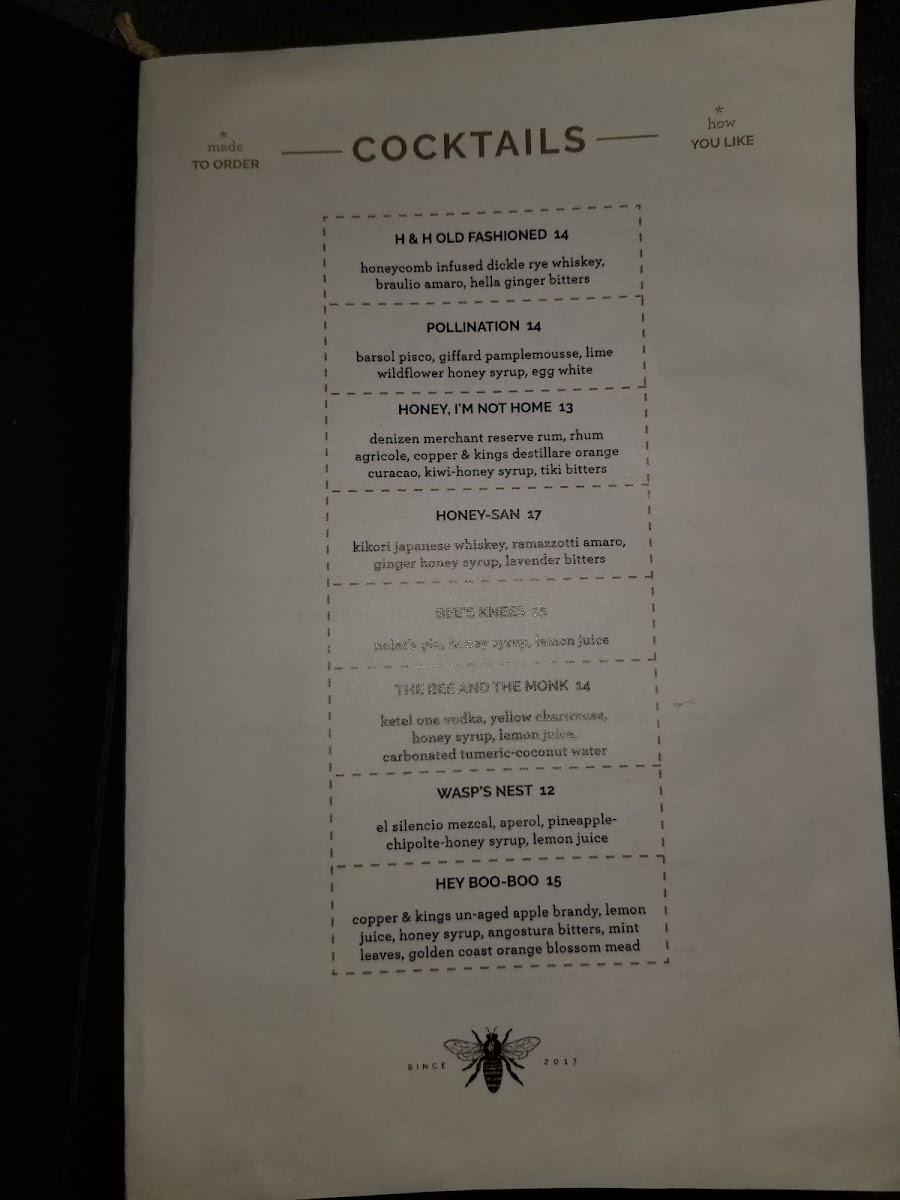 When it comes to the culinary offerings, the menu is a delightful fusion that highlights the essence of honey-infused cocktails. Sip on the "H&Hold Fashioned," a masterful blend of honeycomb-infused Dickel rye whiskey, Braulio Amaro, and Hella ginger bitters, crafted for just $14. Or try the "Pollination," an exquisite combination of Barsol pisco, Giffard pamplemousse, lime, and wildflower honey syrup, perfectly shaken with egg white to create a silky texture, also priced at $14. Each cocktail is designed to tantalize your taste buds and elevate your evening.